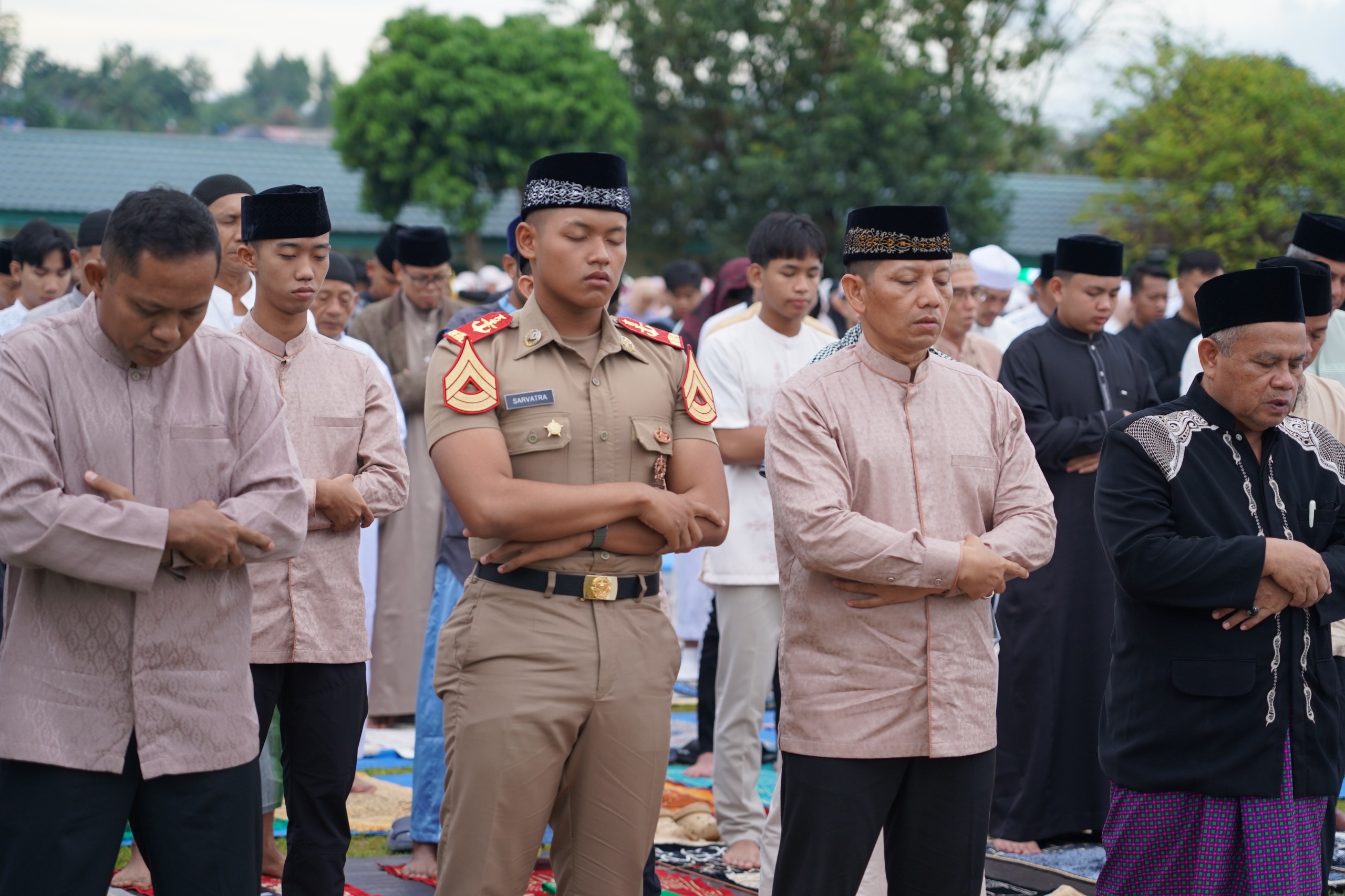 “Alhamdulillah kita bisa kembali bertemu dengan hari kemenangan, di Hari Raya Idul Fitri 1 Syawal 1447 H, yang mana selama satu bulan lamanya kita harus berjuang menahan segala hawa nafsu baik lapar dan dahaga, untuk memperoleh kemenangan di hari yang fitri ini,” ujarnya.