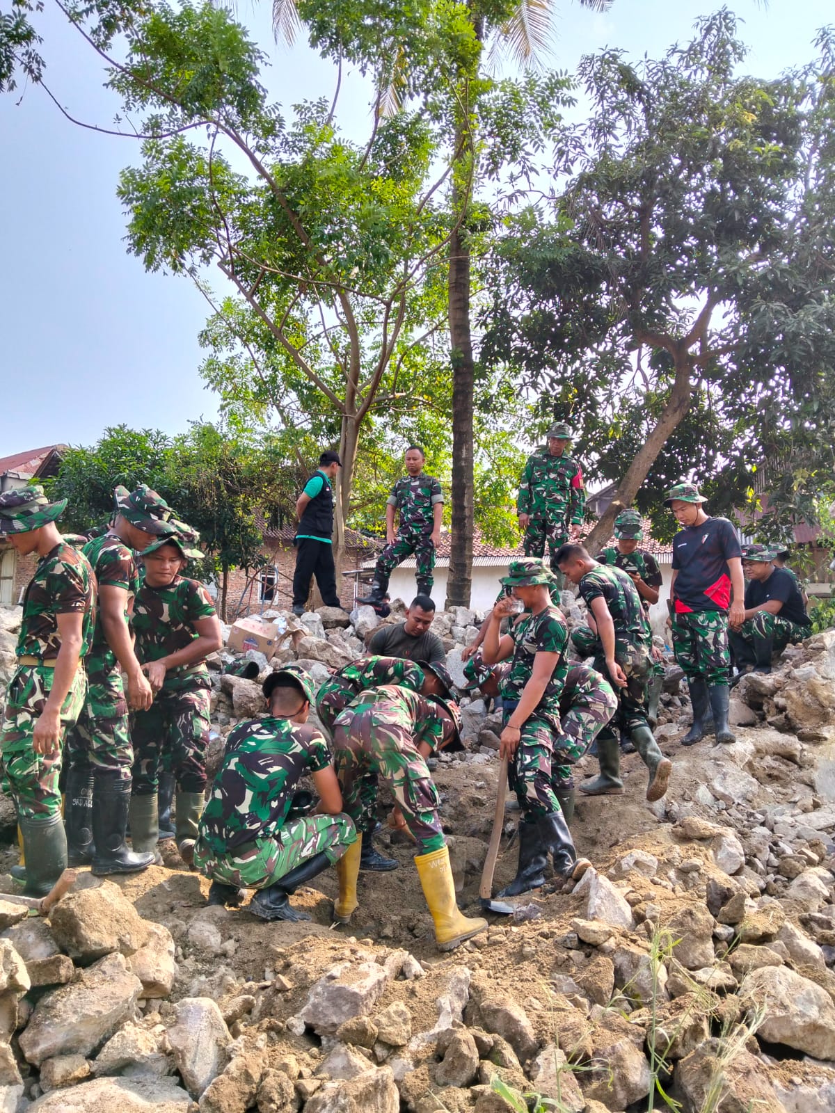 Kegiatan pemecahan runtuhan tembok penahan air ini melibatkan puluhan personel gabungan dan alat berat dari Dinas PU. Seluruh proses berjalan lancar dari pukul 07.00 WIB hingga selesai, tanpa kendala berarti.